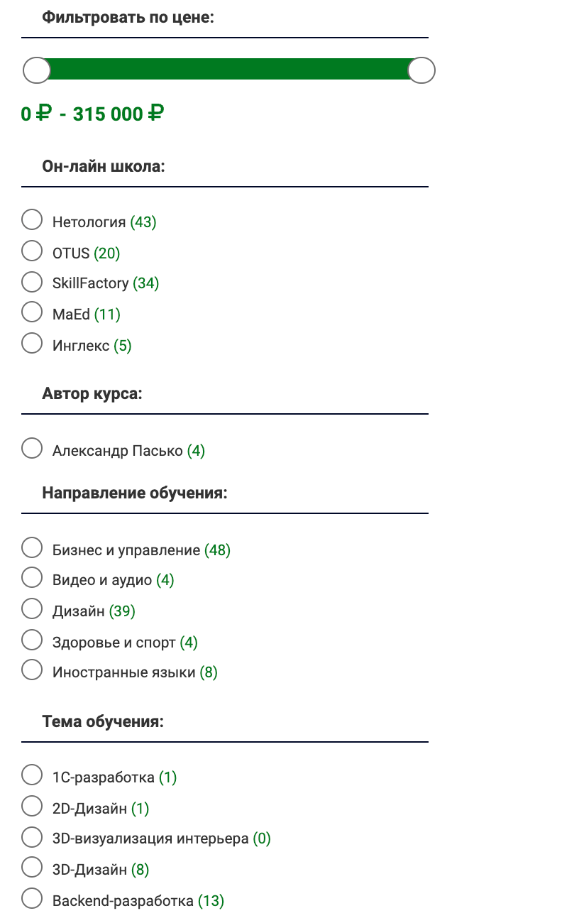 - Сразу отсечь курсы, которые вам не подходят.