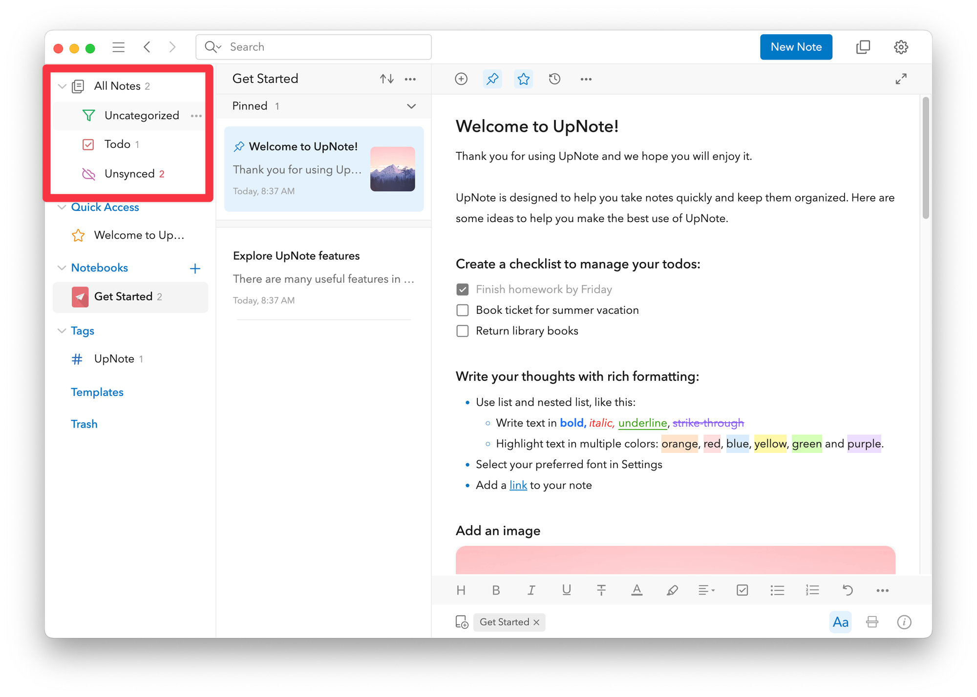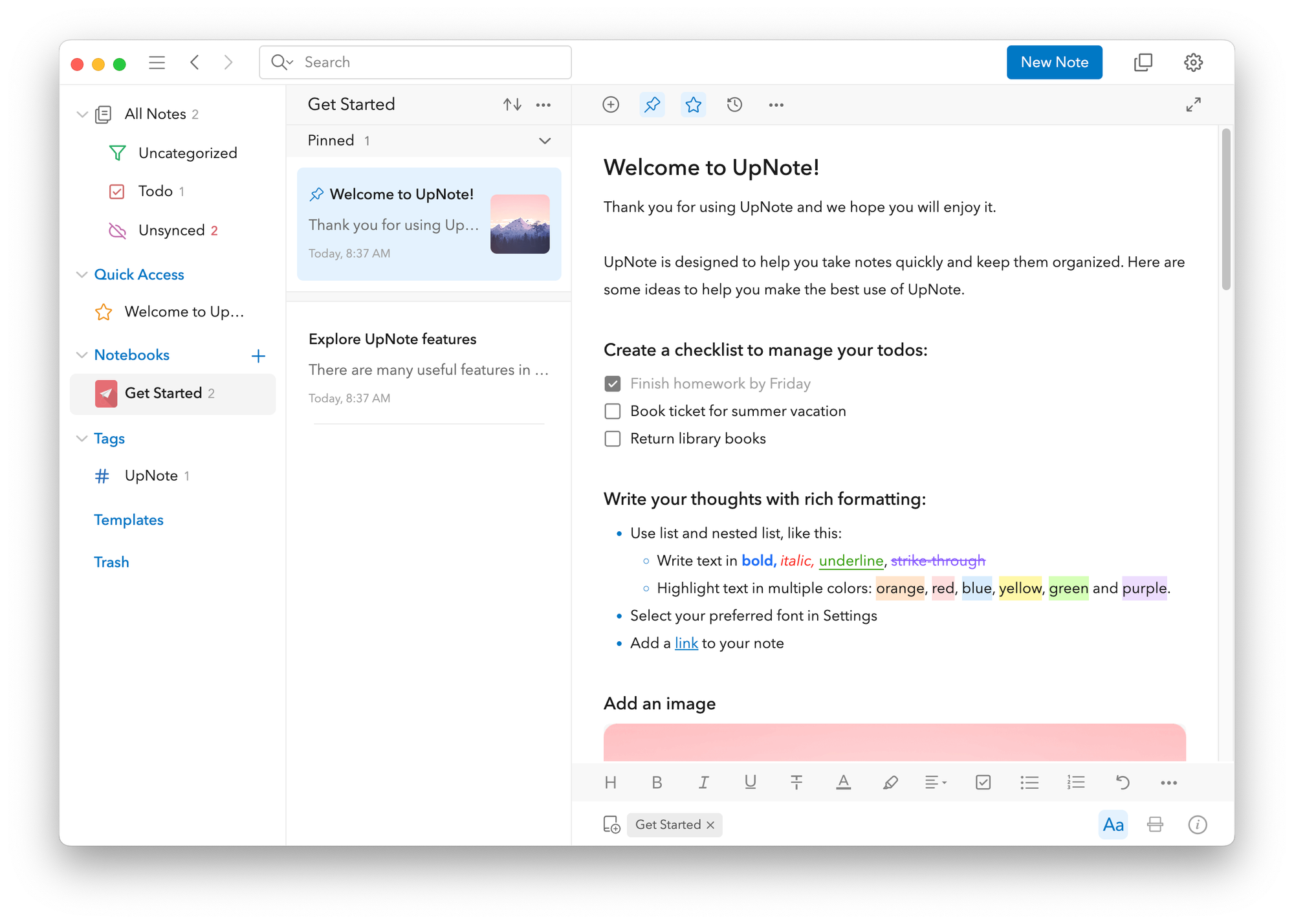 Мне показалось, что UpNote написан на Electron. Возможно, это и так, но я не нашёл этому доказательств. Да и офлайн-работа с заметками доступна.