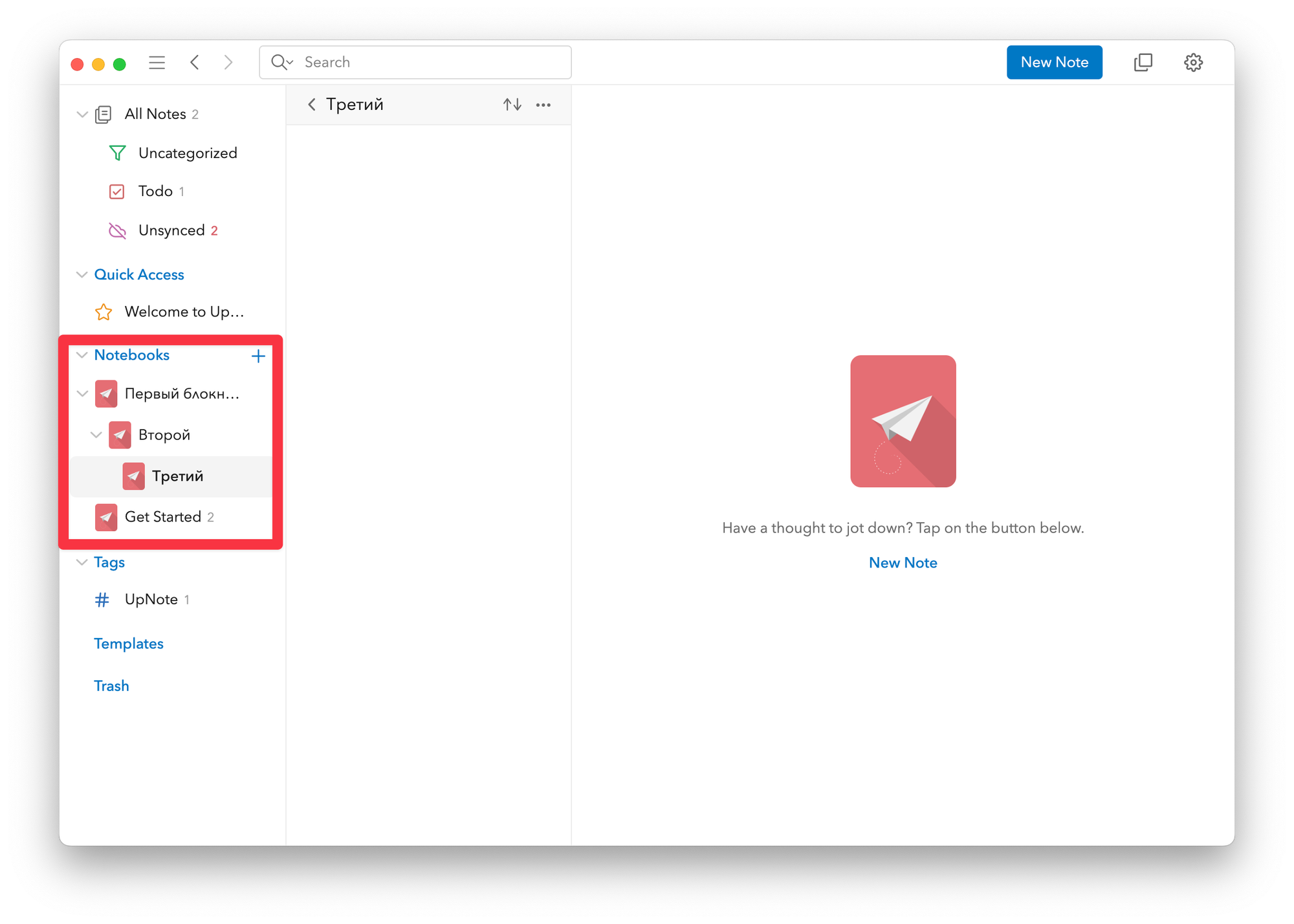 Кроме этого, заметки можно добавлять в избранное, добавлять им теги и, конечно, раскладывать их по блокнотам. UpNote поддерживает многоуровневую сложность, что круто.