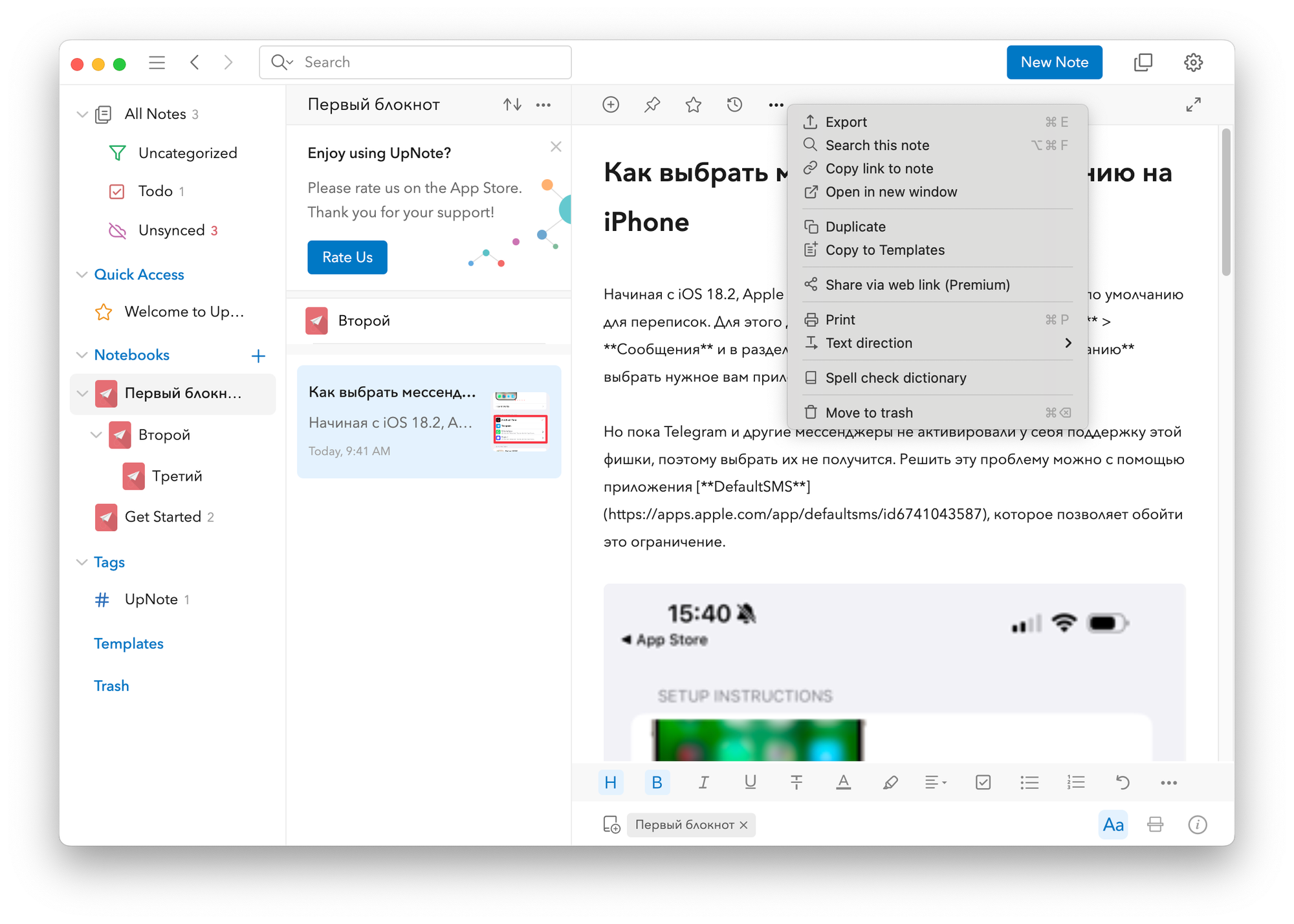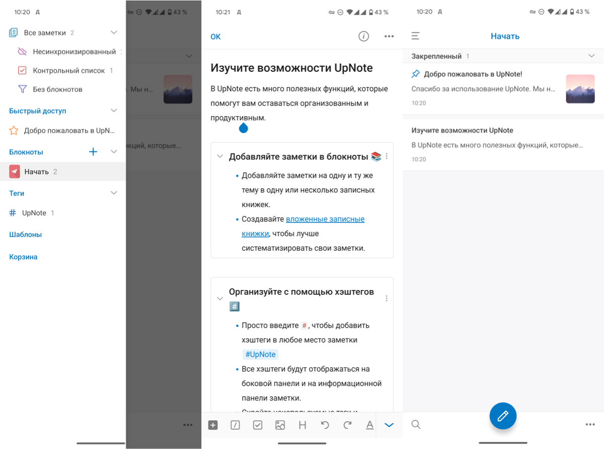 По большей части мне понравилось UpNote. Я, как адепт Evernote, вообще почувствовал себя как дома с точки зрения возможностей организации заметок.
