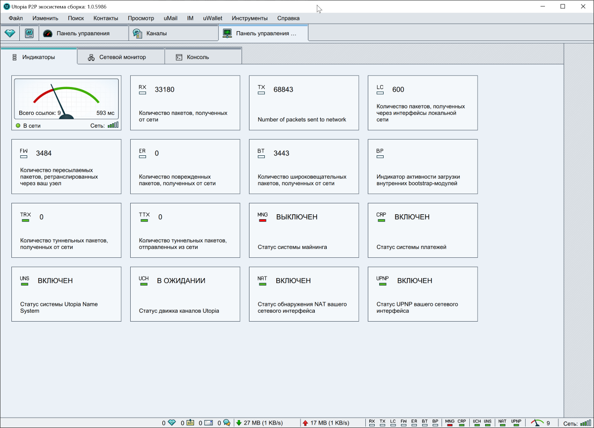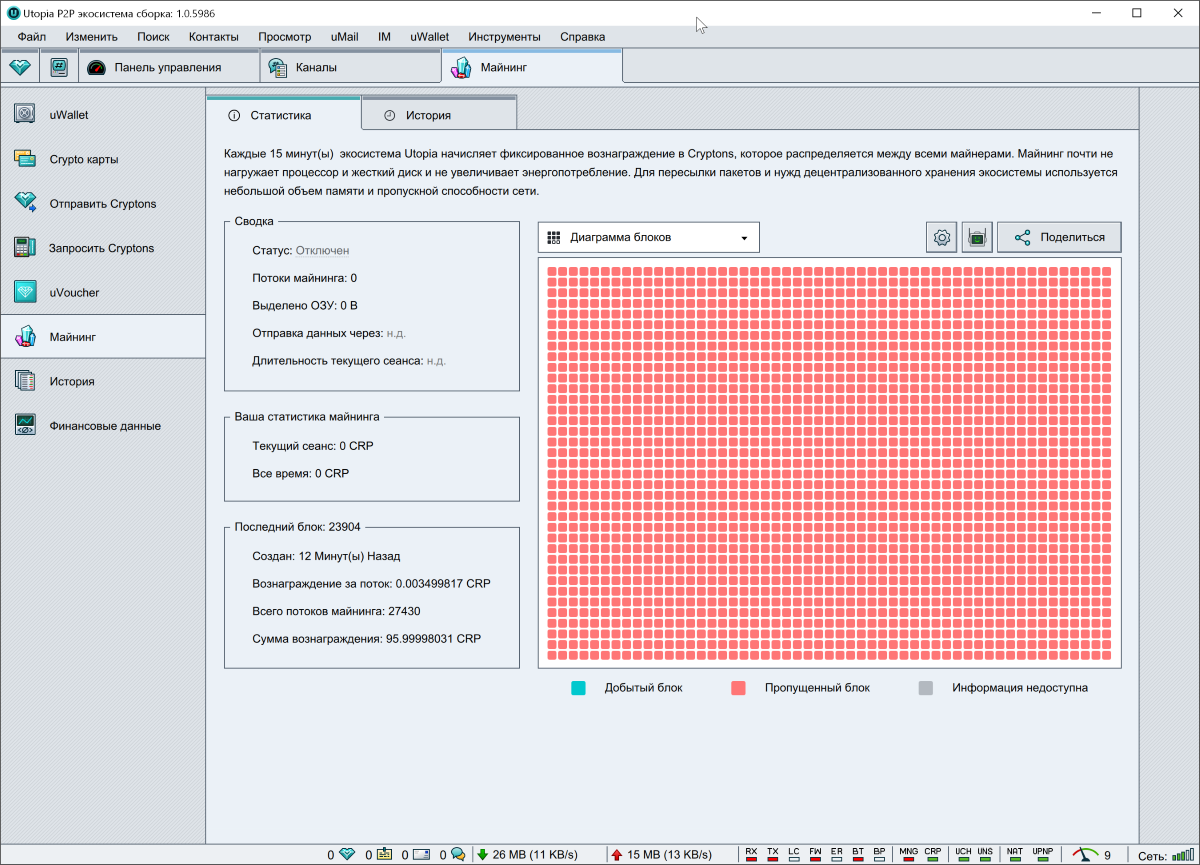 В приложении много других полезных инструментов. К примеру, можно посмотреть текущие данные сети Utopia.