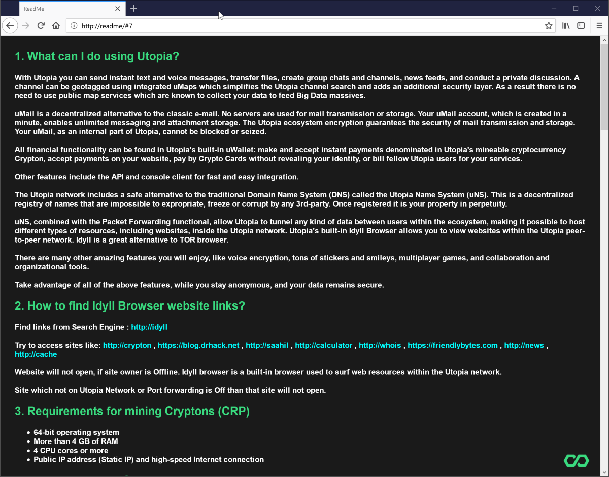 Браузер в Utopia называется «Idyll», и по своей сути — это Firefox. Поэтому о возможностях я не буду рассказывать.