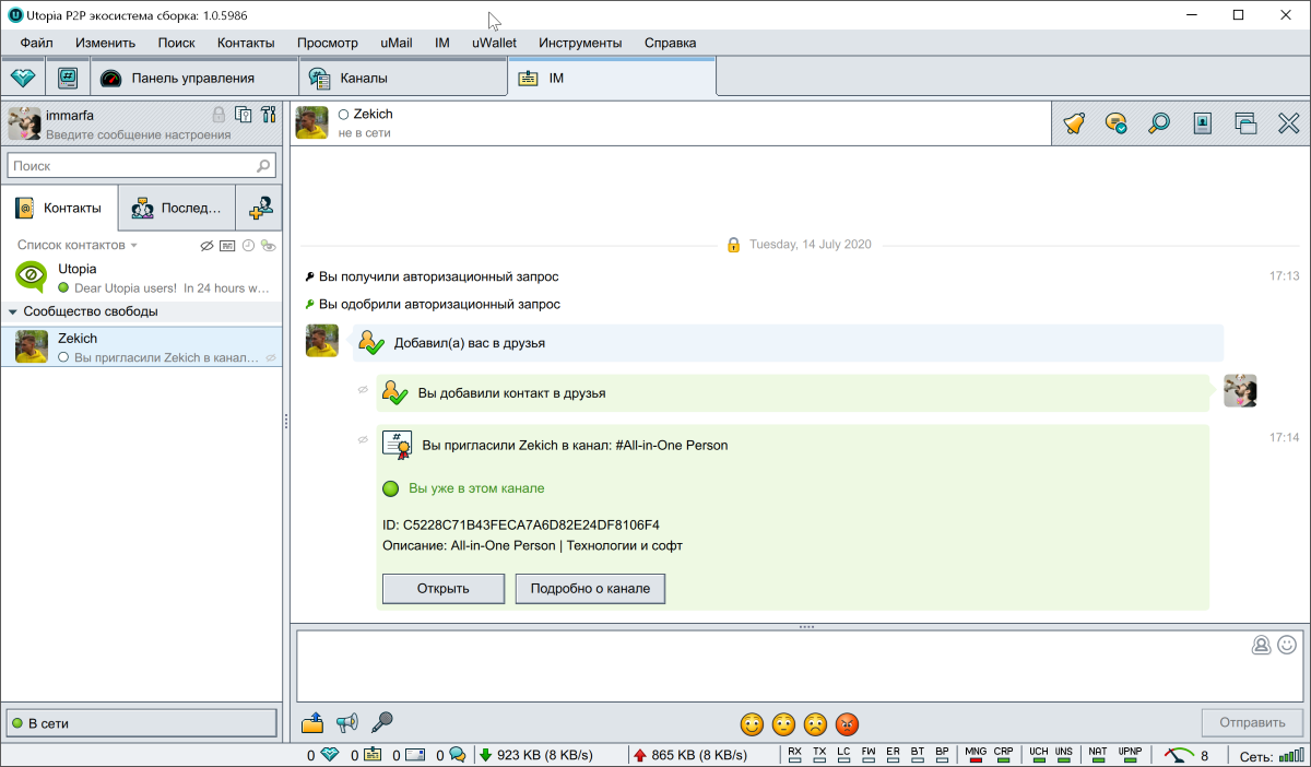 Для обмена информацией между пользователями в системе есть почта (uMail) и мессенджер (IM). А ребята типа меня могут вести свои каналы и чаты.