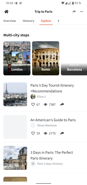 Первый раздел показывает те места, которые стоит посетить в той или иной стране (или в конкретном городе). Каждый объект сопровождается фото, тегами, кратким описанием, данными из Google Карт (рейтинг, часы работы, адрес сайта, номер телефона). Вы можете сразу увидеть, будет ли он открыт в конкретный день, добавить его в свою поездку, перейти по ссылке на его сайт, посмотреть его расположение на карте или же проложить к нему маршрут.
