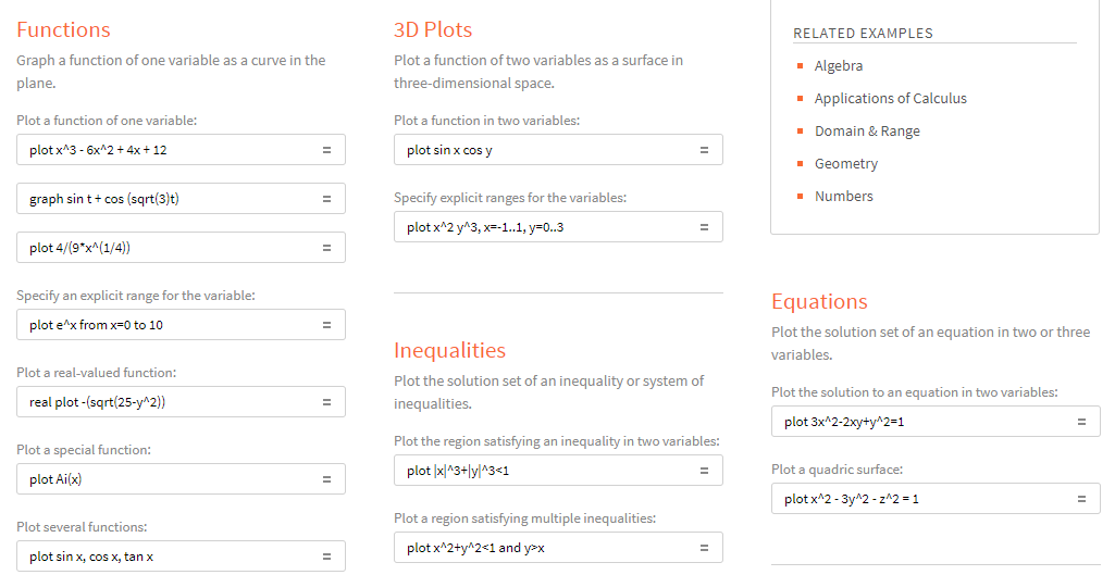 Например, в разделе Mathematics > Plotting & Graphics вы сможете просмотреть различные функции, уравнения и прочее, на основе которых можно построить график.