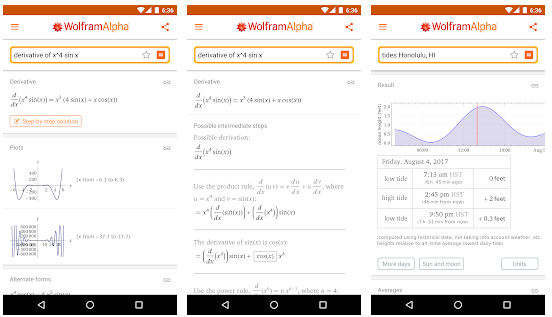 У Wolfram|Alpha есть мобильные приложения для iOS, Android, Kindle fire и Windows Phone. Либо можно скачать небольшое приложение для вычисления каких-то узких задач.