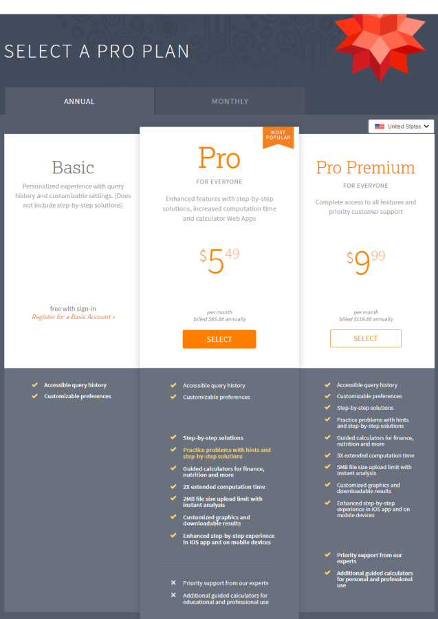 Для большинства вычислений будет достаточно бесплатной версии сайта. А вот если вы часто пользуетесь Wolfram|Alpha и вам надо интегрировать его в вашу работу, то лучше приобрести платный тариф. Есть более дешёвые версии для студентов и преподавателей. А обычная версия стоит от 5,49$ в месяц.