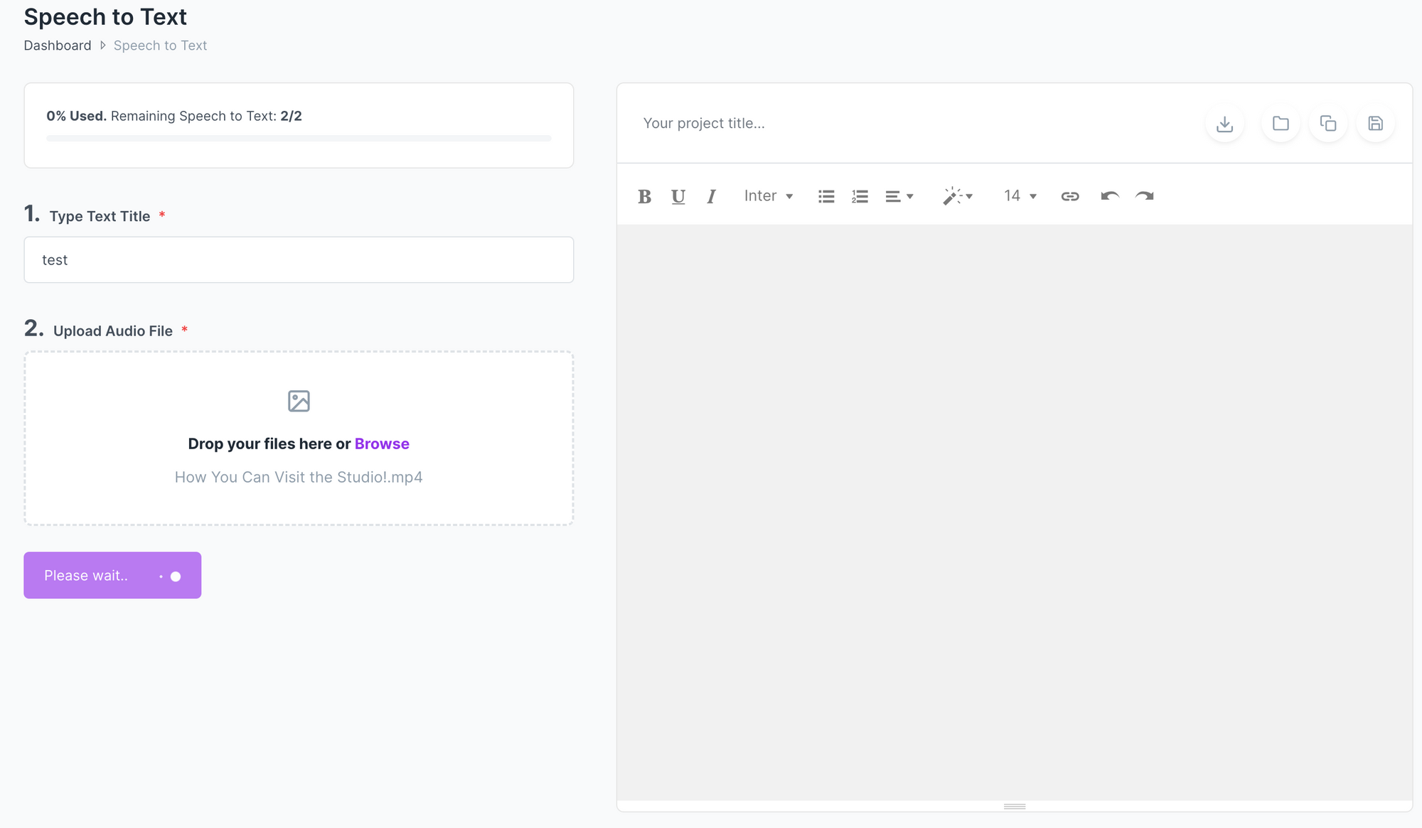 Здесь можно загрузить аудио- или видеофайл и с помощью нейросети перевести его в текст. Всё очень просто.