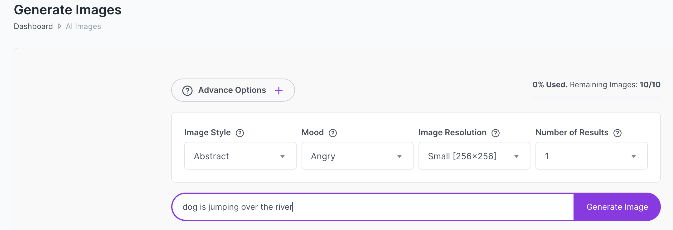 Раздел генерации картинок меня немного разочаровал отсутствием практически всех привычных опций standalone-генераторов, даже при активации пунктов Advance Options.