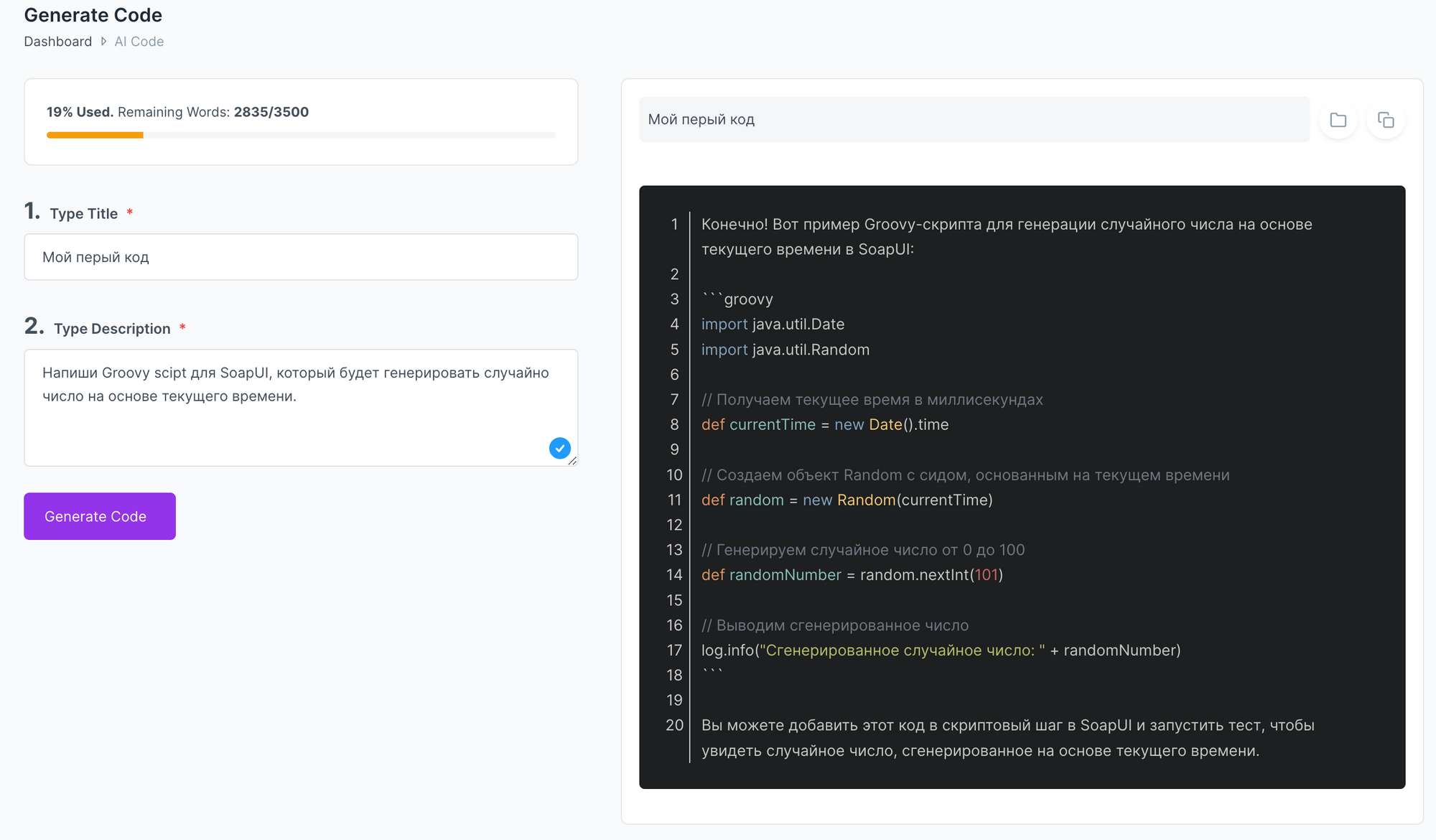 Вот к этому инструменту у меня претензий нет. Я на русском языке указал требования к коду, который мне мог бы быть полезен в работе. И получил рабочий результат.