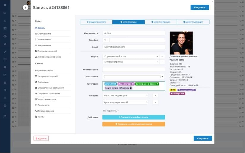 YCLIENTS — CRM-система для автоматизации онлайн-записи и работы бизнеса, который нацелен на обслуживание частных клиентов.