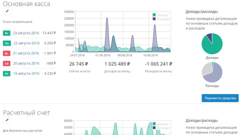 А среди финансовых отчётов можно найти: движение средств, P&L и другие.