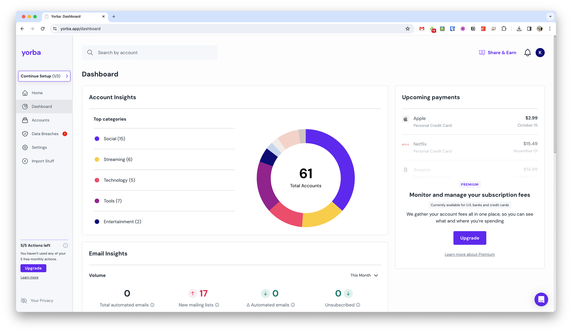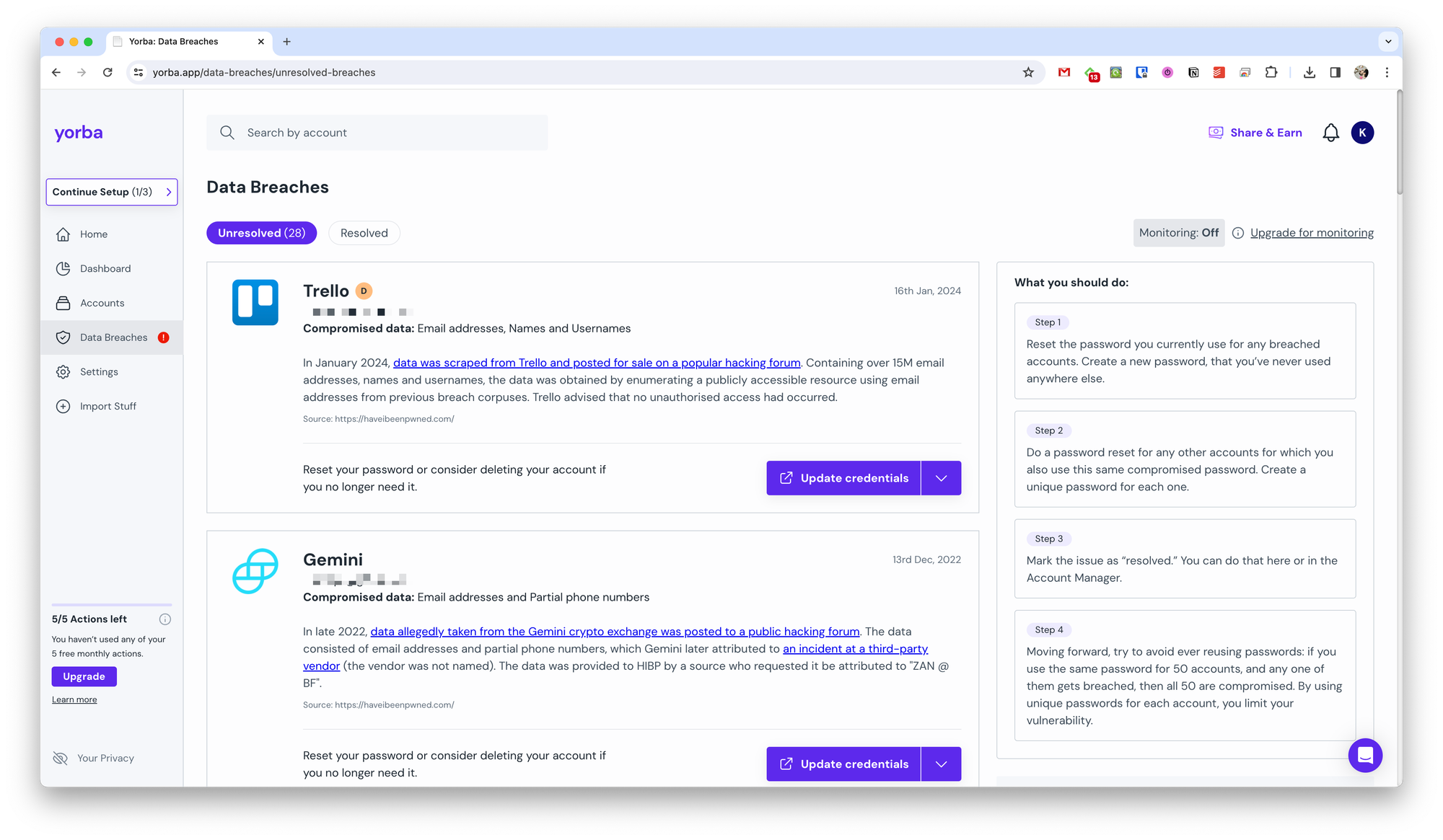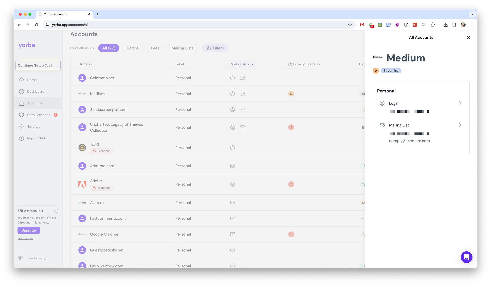 Yorba — онлайн-сервис, который помогает отслеживать ваши аккаунты в различных сервисах, управлять подписками и вовремя реагировать на утечки данных.