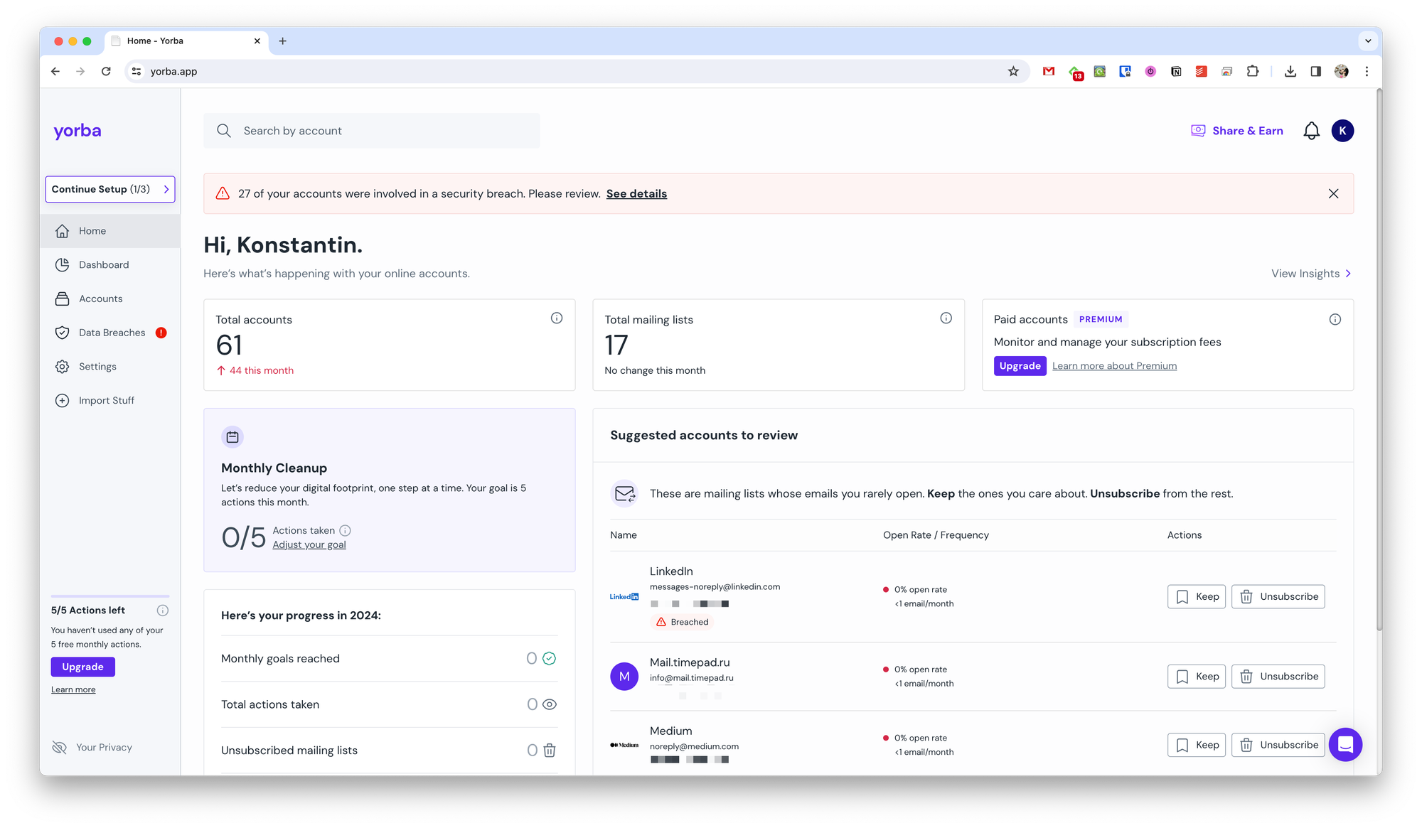 Оформлять платный аккаунт точно нет смысла, если вам не нужно отслеживать подписки или вы не упрётесь в количественное ограничение. Также если ваш менеджер паролей умеет сообщать об утечках, то в Yorba для вас будет мало смысла. Но если вы пользуетесь каким-нибудь менеджером паролей Chrome или Apple и сверху хотите отписаться от почтовых рассылок, то можно попробовать Yorba.