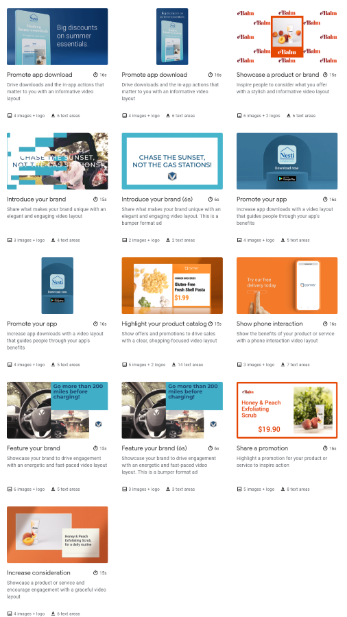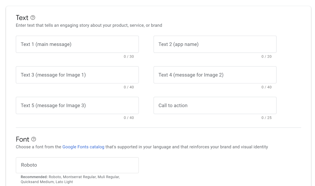 В нём можно указать основные цвета бренда, добавить ваше лого, изображения, текст, музыку из библиотеки Google и выбрать шрифт.