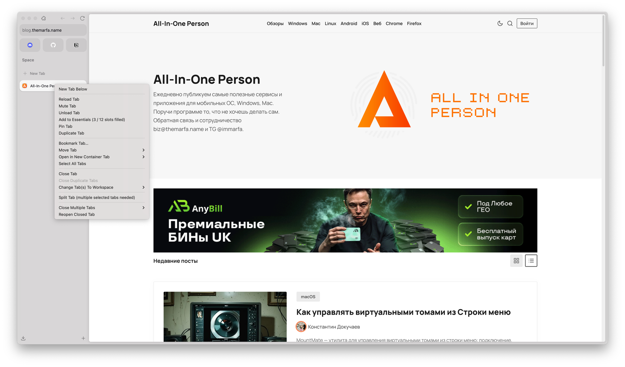 Поэтому кроме нового дизайна браузера, от себя Zen может предложить работу с пространствами, которые здесь называются Spaces. Казалось бы, но нет...