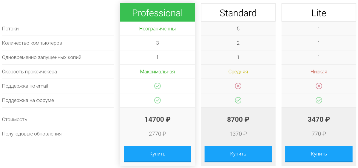 ZennoPoster поставляется в трёх редакциях: Professional, Standard и Lite. Разницы в доступных функциях нет, и вы в любом случае получаете качественную автоматизацию любых задач. Ограничения влияют лишь на количество компьютеров, на которых можно использовать программу, наличие техподдержки от разработчиков и скорость прокси-чекера.