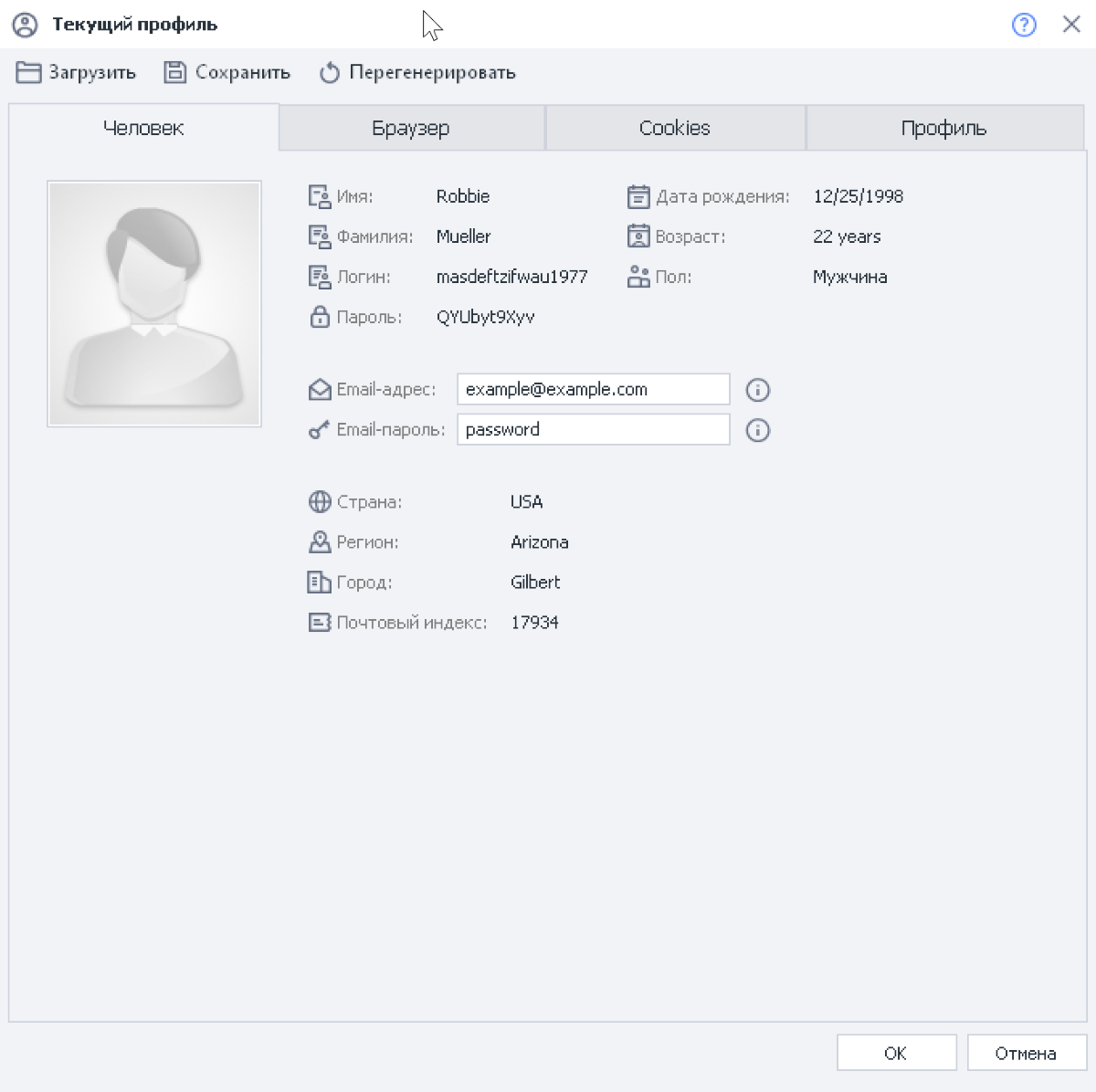 Если с браузером всё понятно, то зачем нужен человек? Человек — это набор встроенных профилей пользователей, которые используются при регистрации на сайтах.