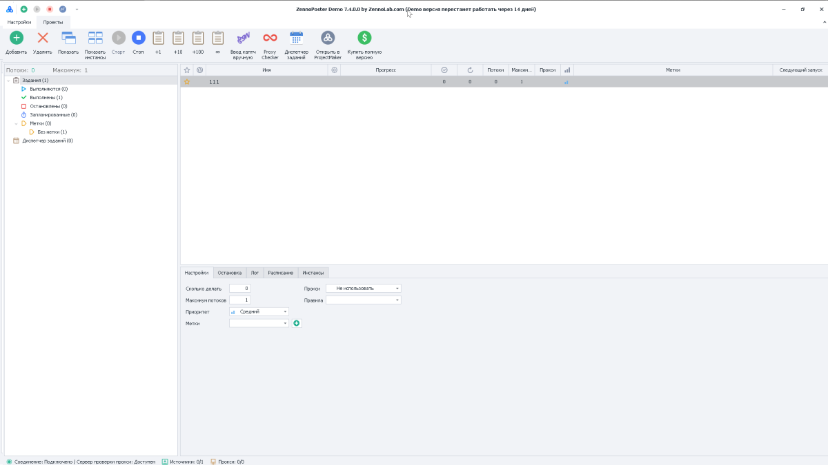 После того как вы создали проект, открываем ZennoPoster, открываем проект и задаём параметры выполнения.