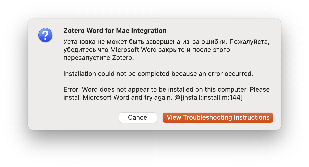Я хотел избежать этого пункта, но не получилось. Мой первый запуск Zotero был на macOS Sonoma, и после установки я получил вот такое сообщение: