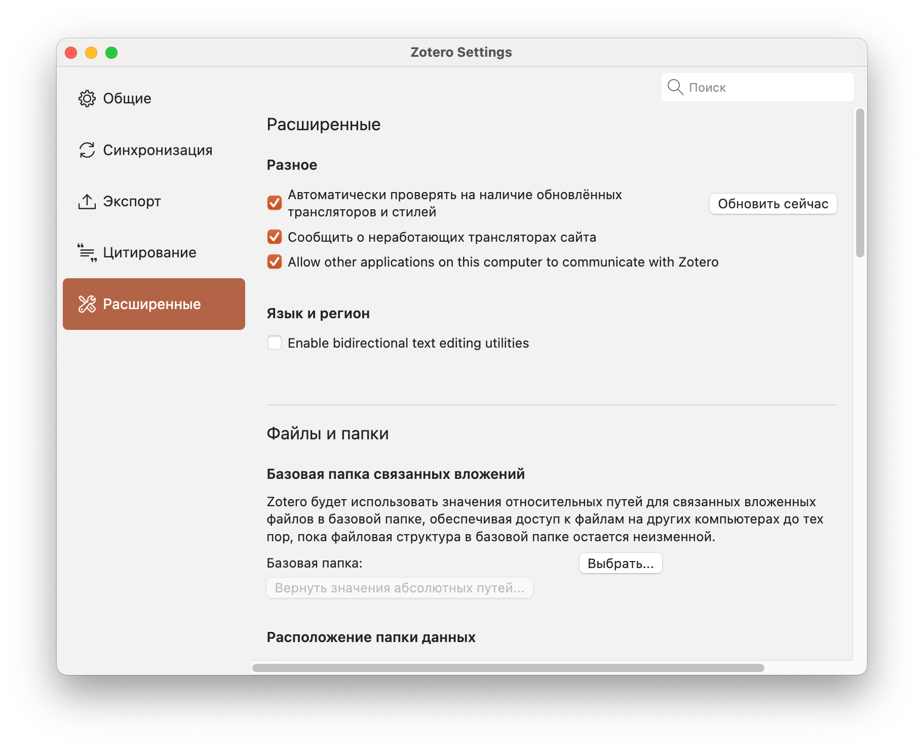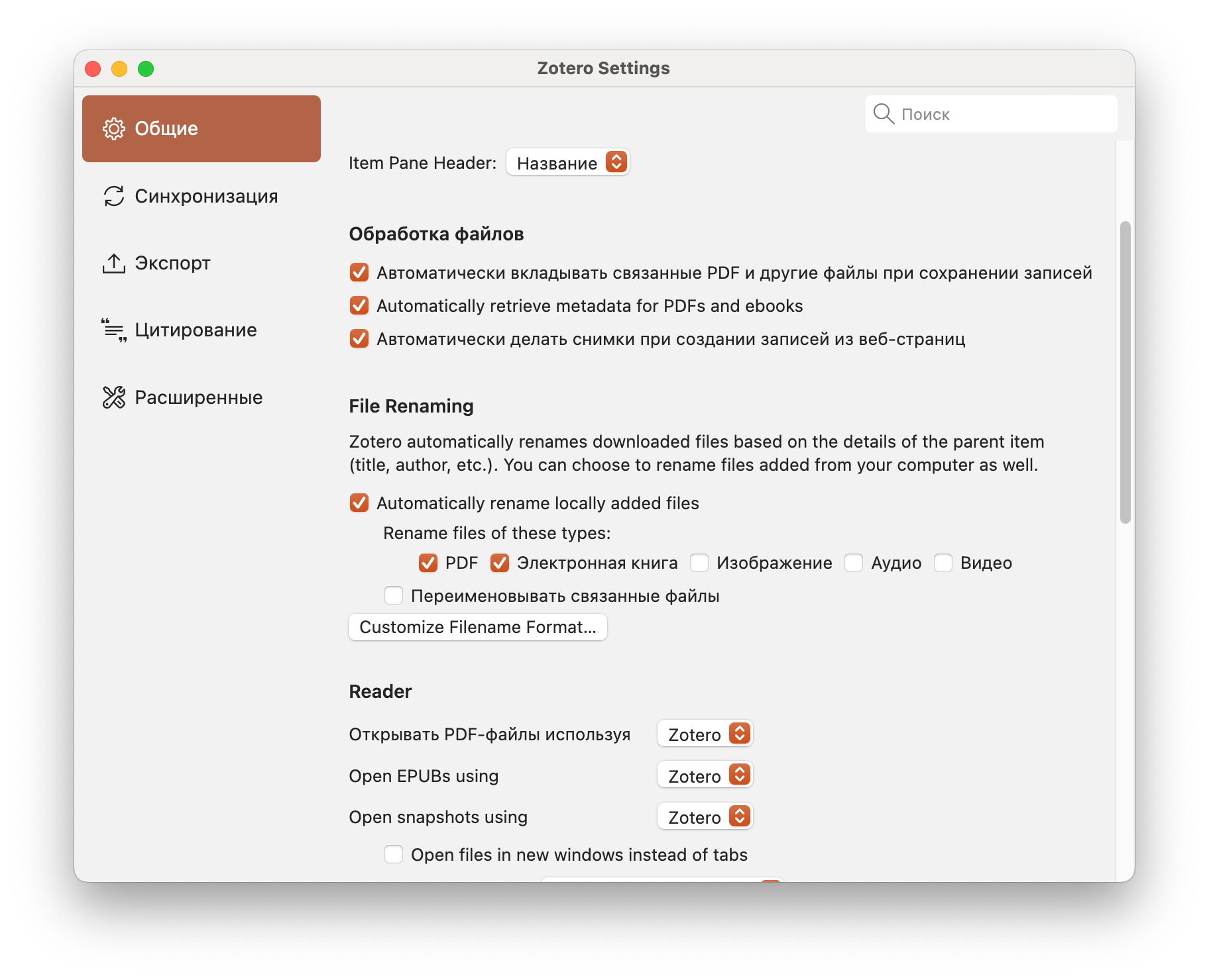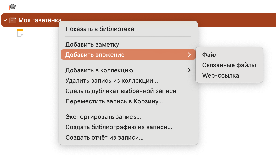 - Stored (или обычное) — хранится в директории Zotero, что позволяет приложению полностью управлять им и синхронизировать. Удаление исходного файла ни на что не влияет.