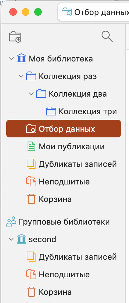 - Неподшитые — отобразит все данные, которые находятся вне коллекций, что позволяет быстро их добавить в нужный раздел.