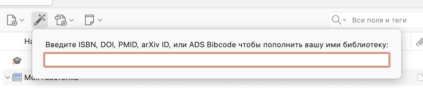 Чтобы упростить этот процесс, в Zotero предусмотрено добавление публикаций по ISBN, DOI и прочим подобным данным.