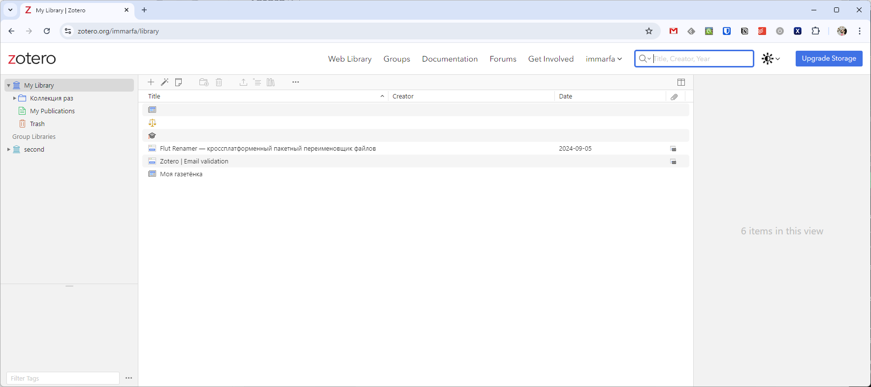 - Мои публикации — будет полезен для творческих людей. Здесь подразумевается хранение текстов, написанных вами. Им можно указать тип лицензии и поделиться со всем миром на сайте Zotero.