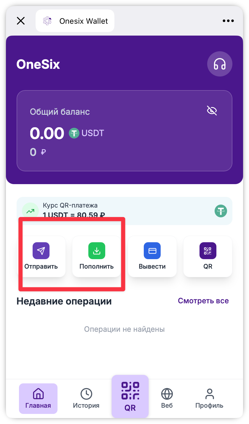 В этом плане Onesix Wallet не предлагает ничего особенного. Вы можете пополнить баланс и вывести крипту на внешний кошелёк.