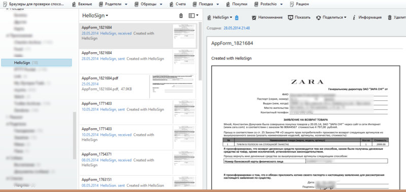 HelloSign позволяет не только подписать документы в он-лайне, но и так же складывает все эти документы ко мне в Evernote. Я несколько раз рассказывал про этот замечательный сервис. Все статьи можно почитать здесь.