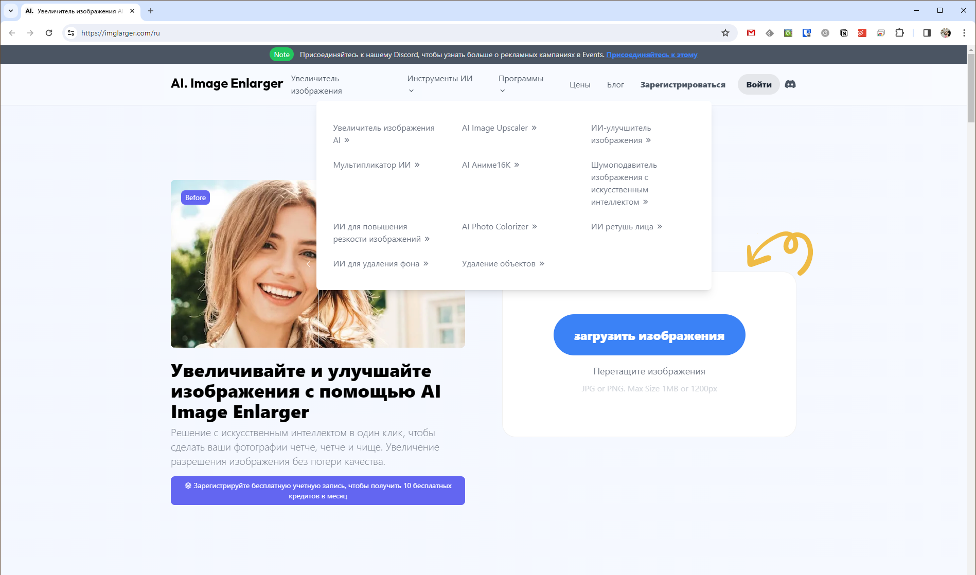 Ещё один сервис для апскейла изображений. Но есть и другие полезные инструменты: смена стиля изображения, увеличение резкости, удаление фона, раскрашивание чёрно-белых фото и многое другое.