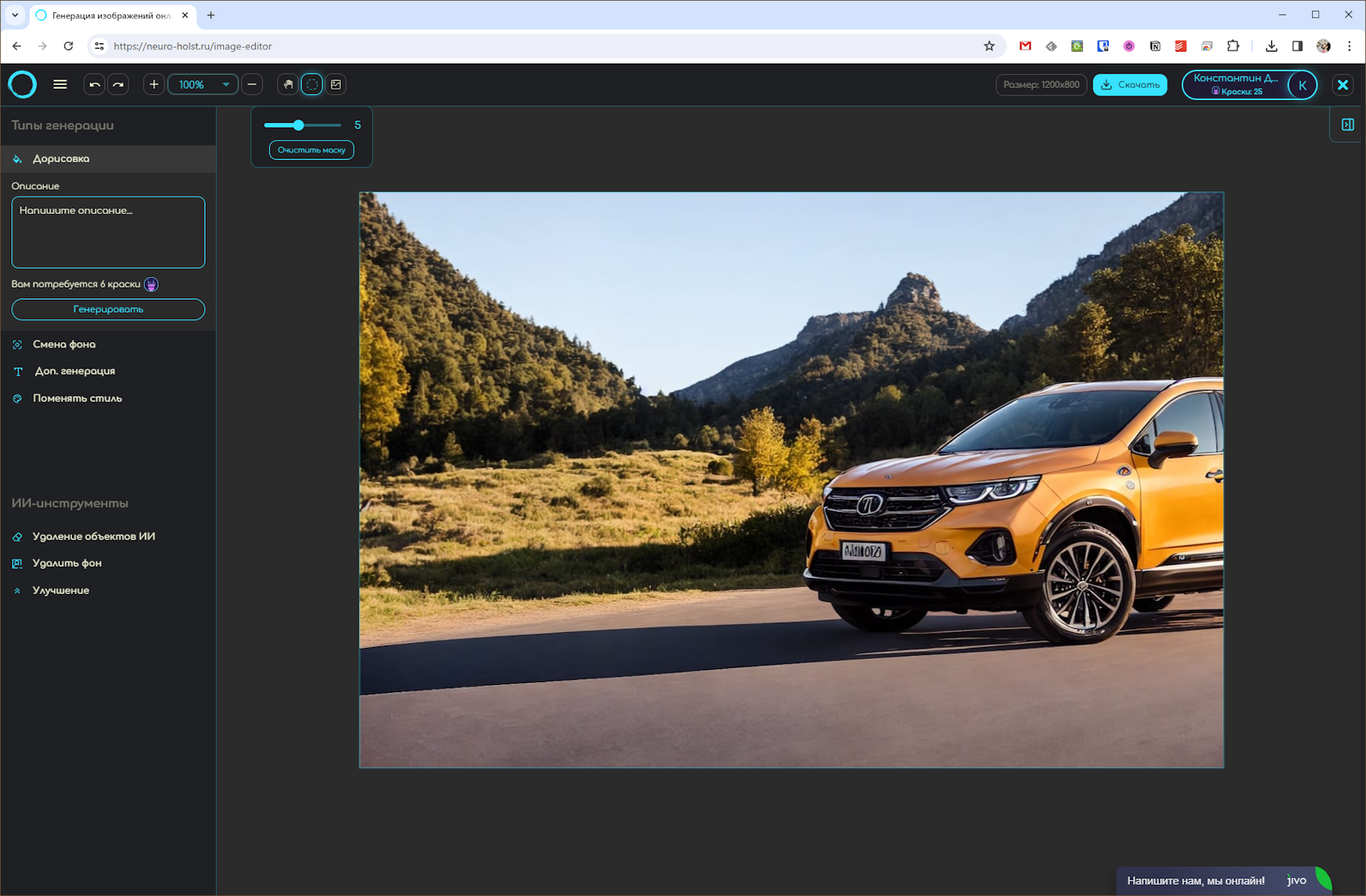 Это русскоязычный сервис, который поддерживает работу с DALL-E 3, Midjourney v6 и некой сетью Холст. С его помощью можно генерировать и обрабатывать изображения. Но нам важна функция дорисовки, которая доступна в разделе ИИ-Редактор.