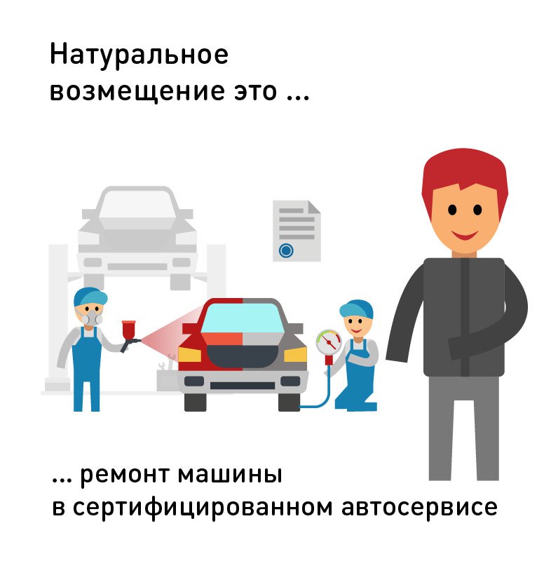 При получении возмещения в «натуральной» форме, вам не нужно будет ломать голову над выбором мастерской, поиском запчастей и всем остальным. Этим займётся страховщик. Вы получаете ремонт авто под ключ и даже не задумывается как это всё будет происходить.