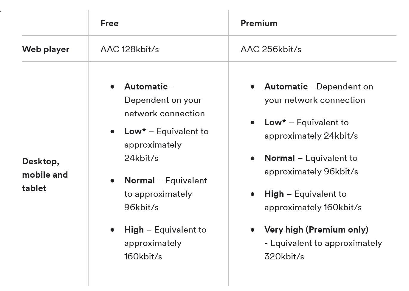 Музыку можно слушать в нескольких вариантах битрейта. В зависимости от аккаунта и платформы. Ниже я приложил картинку.