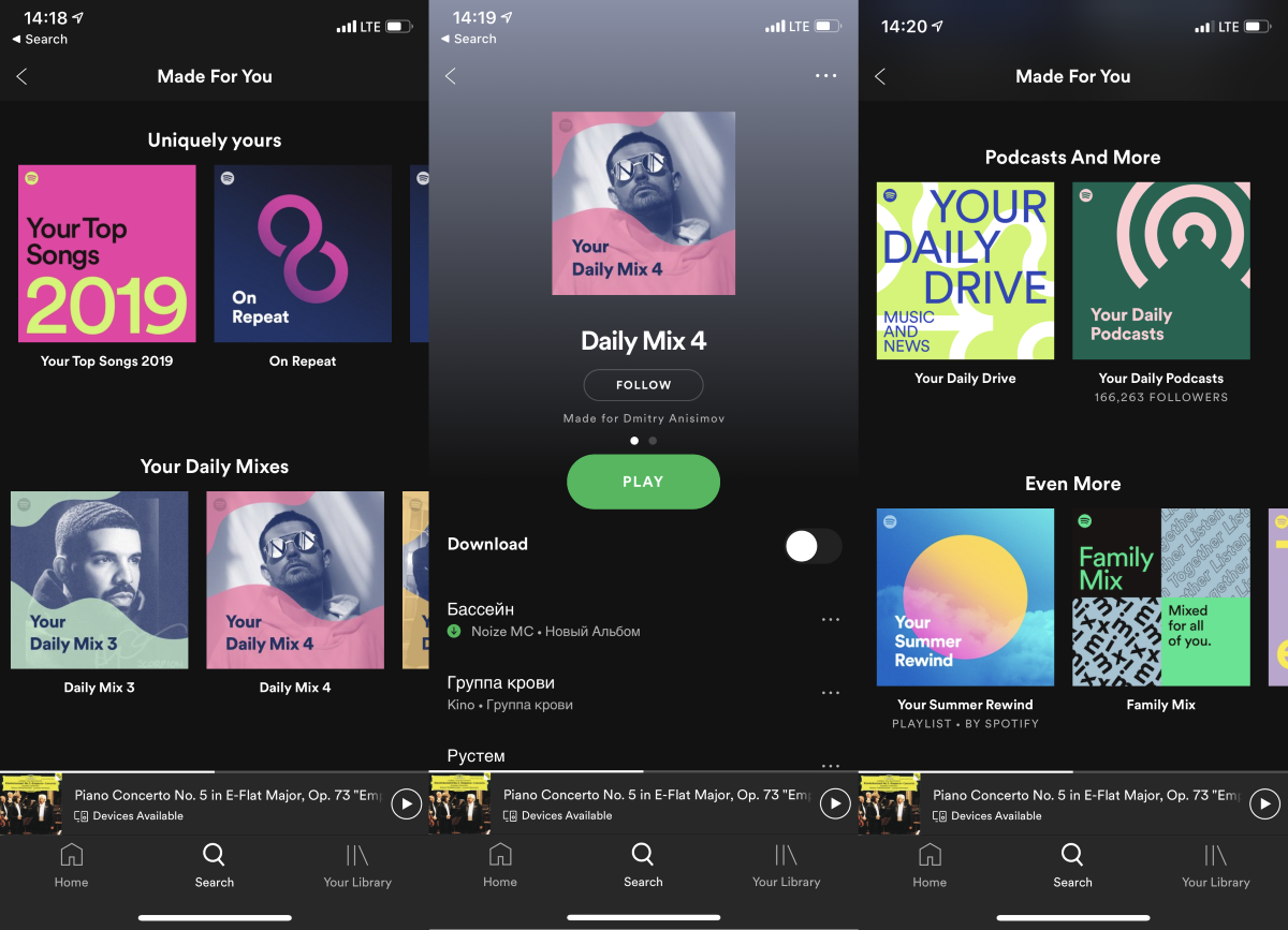 Если вы слушаете музыку в Яндекс.Музыке, то вы примерно понимаете, чего ожидать от плейлистов в Spotify. Рекомендации и умные плейлисты — одна из киллер фич, из-за которой все так возбуждаются на этот сервис.