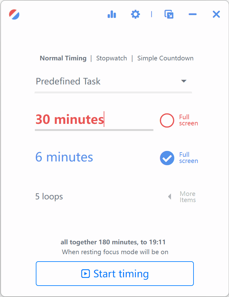 Бесплатная утилита с открытым исходным кодом. Это простой таймер, в котором также есть секундомер и обратный отсчёт. Есть режим полного сосредоточения, когда приложение будет заставлять вас делать перерыв, а монитор будет заблокирован для взаимодействий.