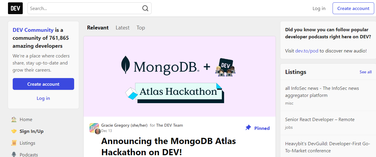 DEV. Англоязычный аналог Хабра. Отличается большим уклоном в разработку, комментаторы лояльны к новичкам. В ТОП новостной ленты обычно попадают гайды, обучающие статьи и советы, поэтому не придется пробираться сквозь информационный мусор.