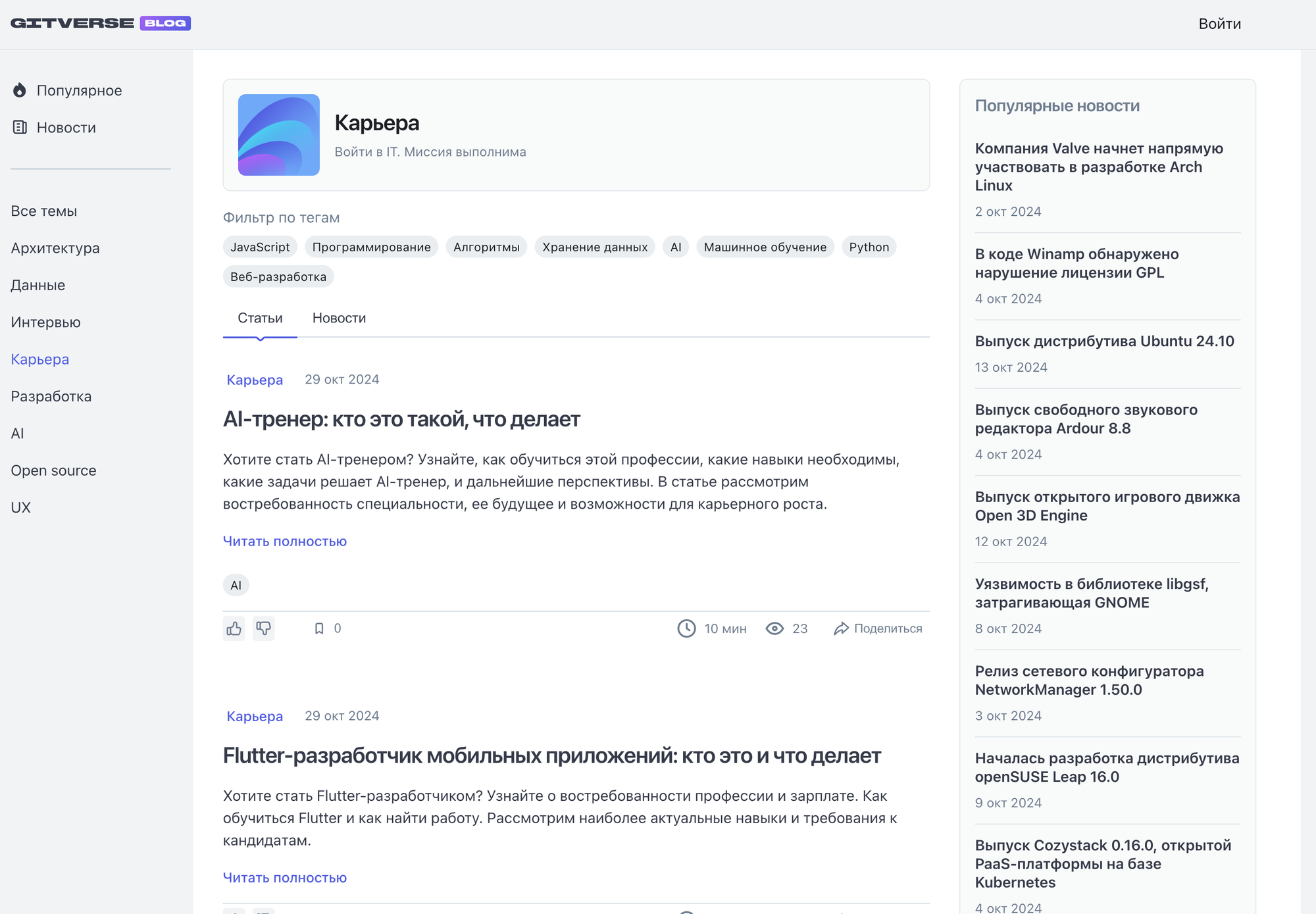 Gitverse является смотровой площадкой для обмена знаниями, опытом и идеями среди программистов. Этот блог помогает объединять людей, работающих в сфере технологий, и способствует развитию сообщества разработчиков.