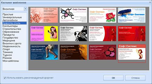 У редактора есть широкие дизайнерские возможности. В программу включено более 100 шаблонов на тему путешествий, косметологии, медицины и других сфер. Благодаря таким шаблонам вы легко создадите собственный дизайн. Для создания визитки выберите определённую композицию, фон, цвета, при желании можно добавить на страницу фото и изображения, чтобы сделать вашу визитку индивидуальной. Все шаблоны есть во встроенной коллекции, а изображения можно загрузить со своего компьютера.