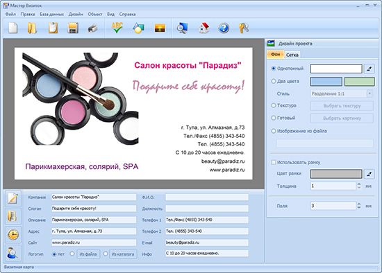 «Мастер визиток» представляет собой утилиту для создания визиток, которую удобно использовать в домашних условиях. С помощью этой программы можно создать и напечатать большое количество карточек с эксклюзивным дизайном.