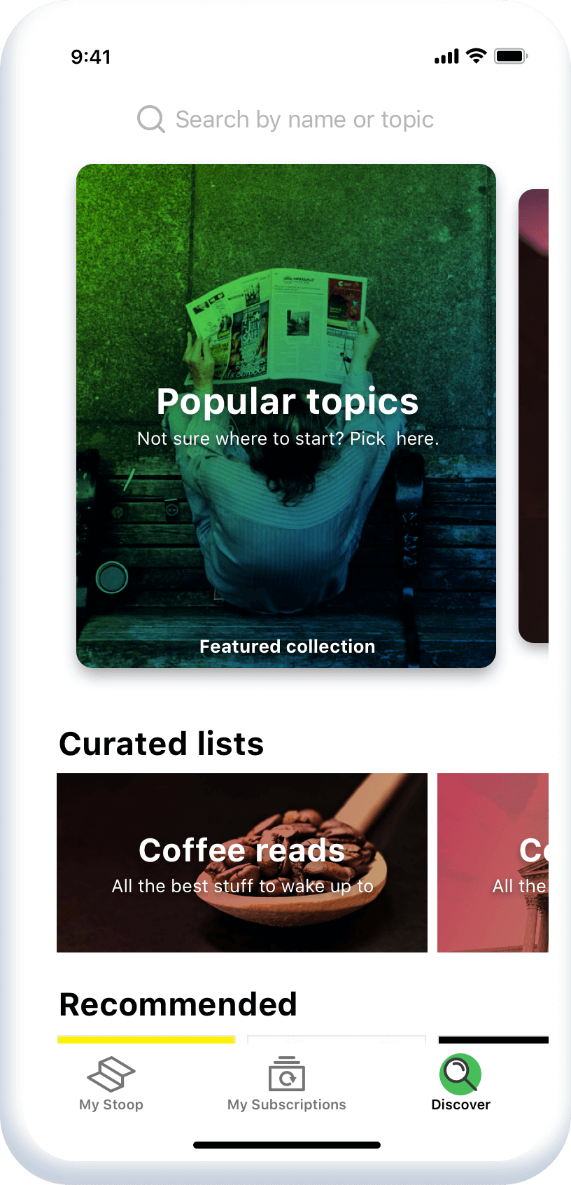 Stoop — мобильное приложение для iOS и Android, которое помогает управлять почтовыми рассылками. Сервис выдаёт пользователю почтовый адрес, который он может использовать при подписке — все приходящие на него письма Stoop сортирует и адаптирует для чтения на смартфоне. Также на этот адрес пользователь может пересылать заинтересовавшие его ссылки и материалы — такие письма тоже попадут в ленту приложения.