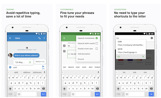 Texpand Pro автоматически подставляет нужные фразы при наборе коротких сниппетов. Работает во многих приложениях на вашем смартфоне, кроме некоторых банковских приложений. Для работы приложения не нужно устанавливать дополнительные клавиатуры. Кроме этого, поддерживаются динамические шаблоны.