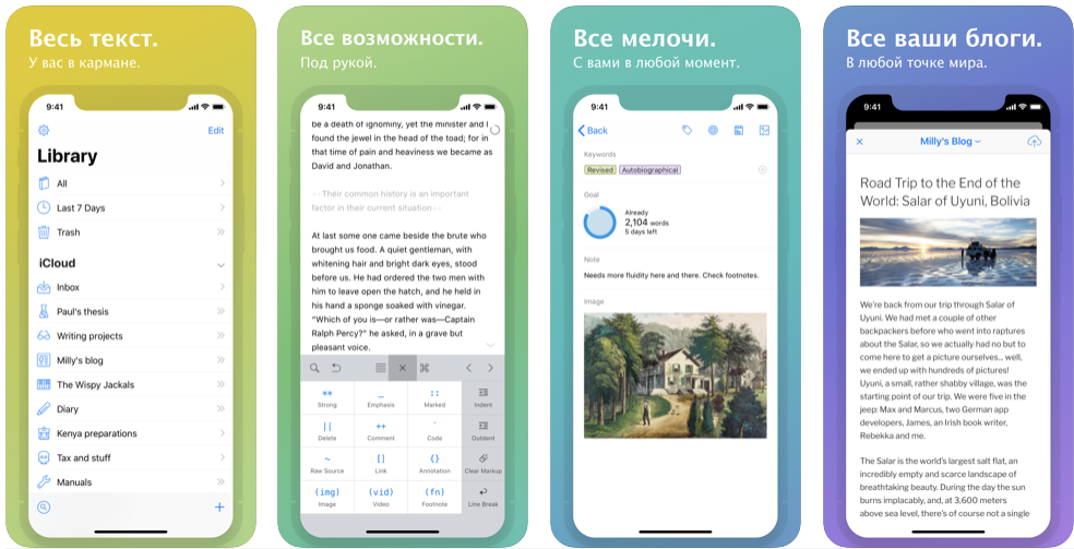 Ulysses — приложение для macOS и iOS, которое поддерживает работу с markdown разметкой, и позволяет хранить всю информацию в удобном структурированном каталоге и синхронизацией между устройствами.