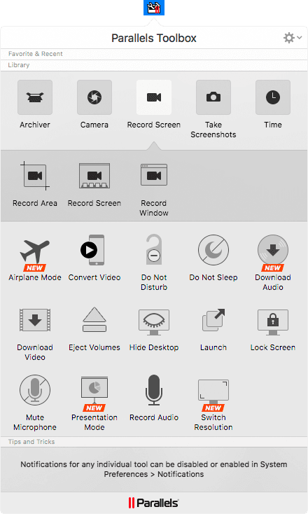 В пакет Parallels Toolbox для Mac & Windows входит конвертор для преобразования множества типов видео в формат MP4. С помощью Parallels Toolbox пользователи смогут скрыть значки на рабочем столе для проведения презентации, отключить уведомления и анимацию, предотвратить переход компьютера в спящий режим, заблокировать экран, отключить микрофон или наоборот записать с него звук.