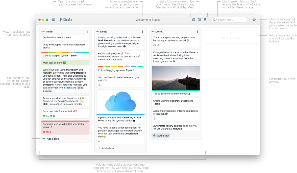 Stacks — простой в использовании менеджер задач, который поможет наглядно отобразить их на доске.