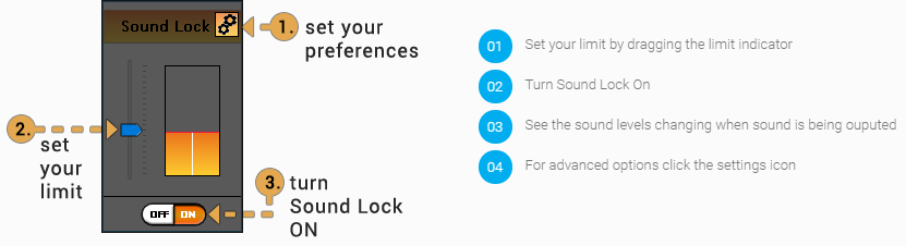 - Sound Lock (настроить ограничение громкости)