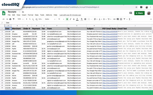 Get My Receipts — просканирует почту на наличие счетов и соберет их автоматически в Google Таблицу.