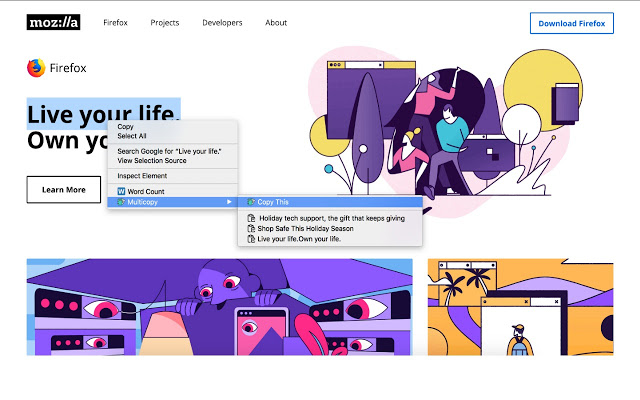 Multicopy — добавляет контекстное меню для копирования нескольких кусков текста. Скопированные данные сохраняются в меню для быстрой вставки.