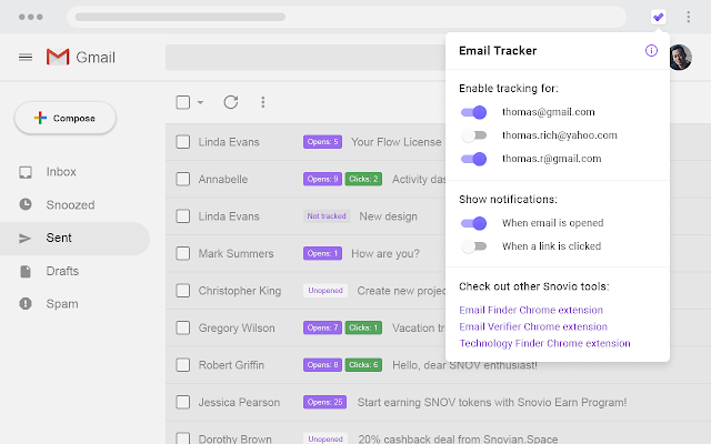 Unlimited Email Tracker - бесплатное расширение для Chrome, которое поможет отслеживать прочтение писем и переходы по ссылкам.