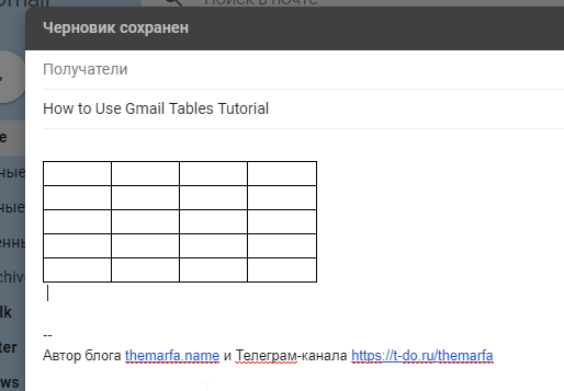 - Gmail Tables (добавить таблицу в текст письма)